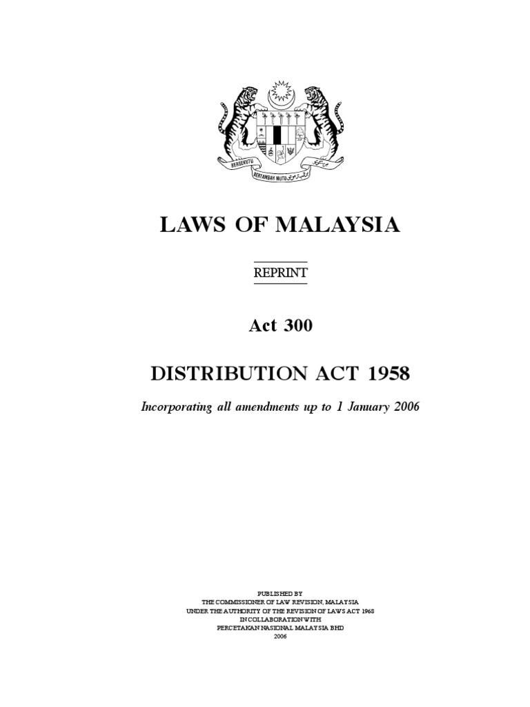 Distribution Act 1958 Malaysia : Upon A Person S Demise Distribute Assets To Beneficiaries Testate With A Will Apply For Grant Of Probate Apply For Letter Of Administration Intestate Ppt Download : Manages administration and distribution of a small estate (pusaka kecil) in malaysia.. Published by the commissioner of law revision, malaysia under the authority of the revision of laws act 1968. Licensed land surveyors act 1958. Distribution act 1958 (for peninsula malaysia & sarawak), intestate succession ordinance 1960 (for sabah). Help reduce the time of estate distribution while your family is suffering waiting. How do i make a nomination?