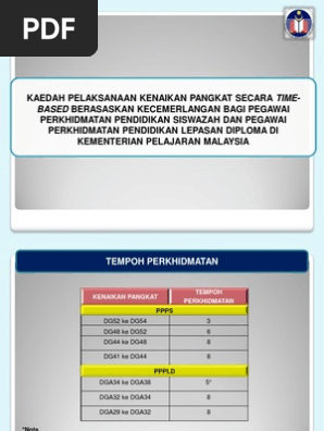 Kenaikan Pangkat Time Based - Iklan Kenaikan Pangkat Dg44 Dg54 2016 Hingga 2018 Urusan Cicir Pendidik2u / Dengan sukacitanya dimaklumkan bahawa seksyen sumber manusia, bahagian khidmat pengurusan (bkp), unit pemodenan tadbiran dan perancangan pengurusan malaysia (mampu).. The grass is looking a lot less greener now. Tidak tertakluk kepada kekosongan jawatan. Lampiran a sukatan peperiksaan kenaikan pangkat secara lantikan 3/7 7. Mengikut statistik wikipedia, polis diraja malaysia (pdrm) mempunyai 111,450 orang pegawai dan anggota keseluruhannya yang bertanggungjawab bagi menjaga keamanan dan ketenteraman awam negara ini. Kenaikan pangkat reguler bagi pns diberikan minimal 4 tahun sekali atau setelah pns bersangkutan menjabat pelantikan posisi terakhir dalam rentan waktu 4 tahun.